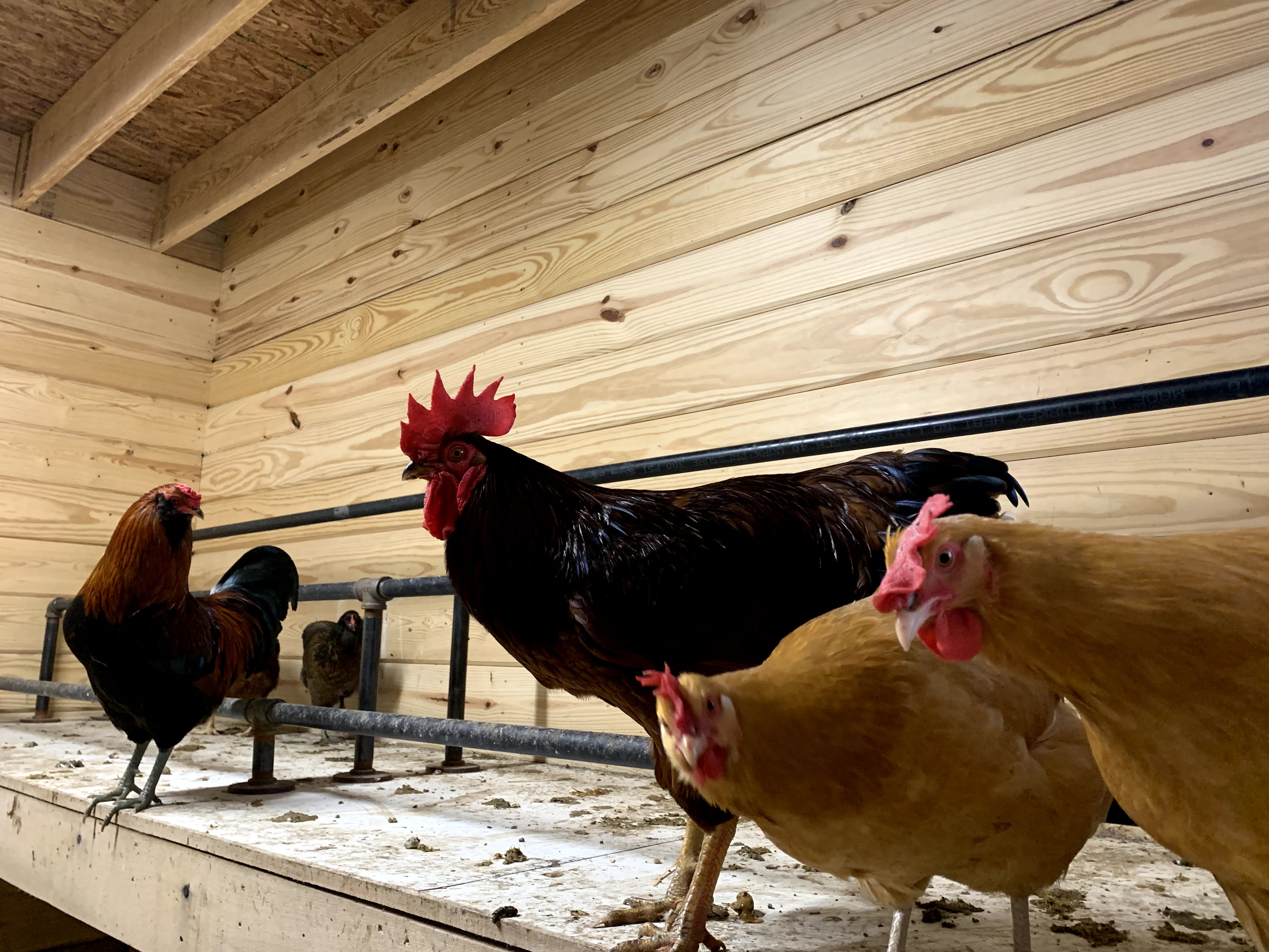 We first decided to have chickens on the farm in 2020. We ordered our first group of chicks from a local hatchery and picked them up on the day they hatched. We got nine chicks in our first flock. We named them all after herbs and spices (onion powder, chili pepper, and mustard, for example). They were all supposed to be hens but we found out, after hearing a some crowing, that we had two roosters. They were Papriko (originally Paprika) and Cinnamon Stick (originally Cinnamon). We kept them in a pet tent in our utility room while they grew when the barn was being finished. We were all working from home due to the pandemic and would take “chicken breaks” to sit together and hold them. We tried to handle each chick daily so they would be used to us. We also made the same sound each time we put them away and gave them treats so they would be used to coming into the barn each night when they heard the sound. When the barn was finished and we were ready to take them out to their new coop, I was worried. I had read that the chicks would have gotten used to hearing my voice first thing in the morning and would be unsettled in their new space in the barn for the first few nights, so my husband and I spent the first night in the newly finished barn on an air mattress. The chicks were just fine, of course, but it made me feel better to help “them” adjust.