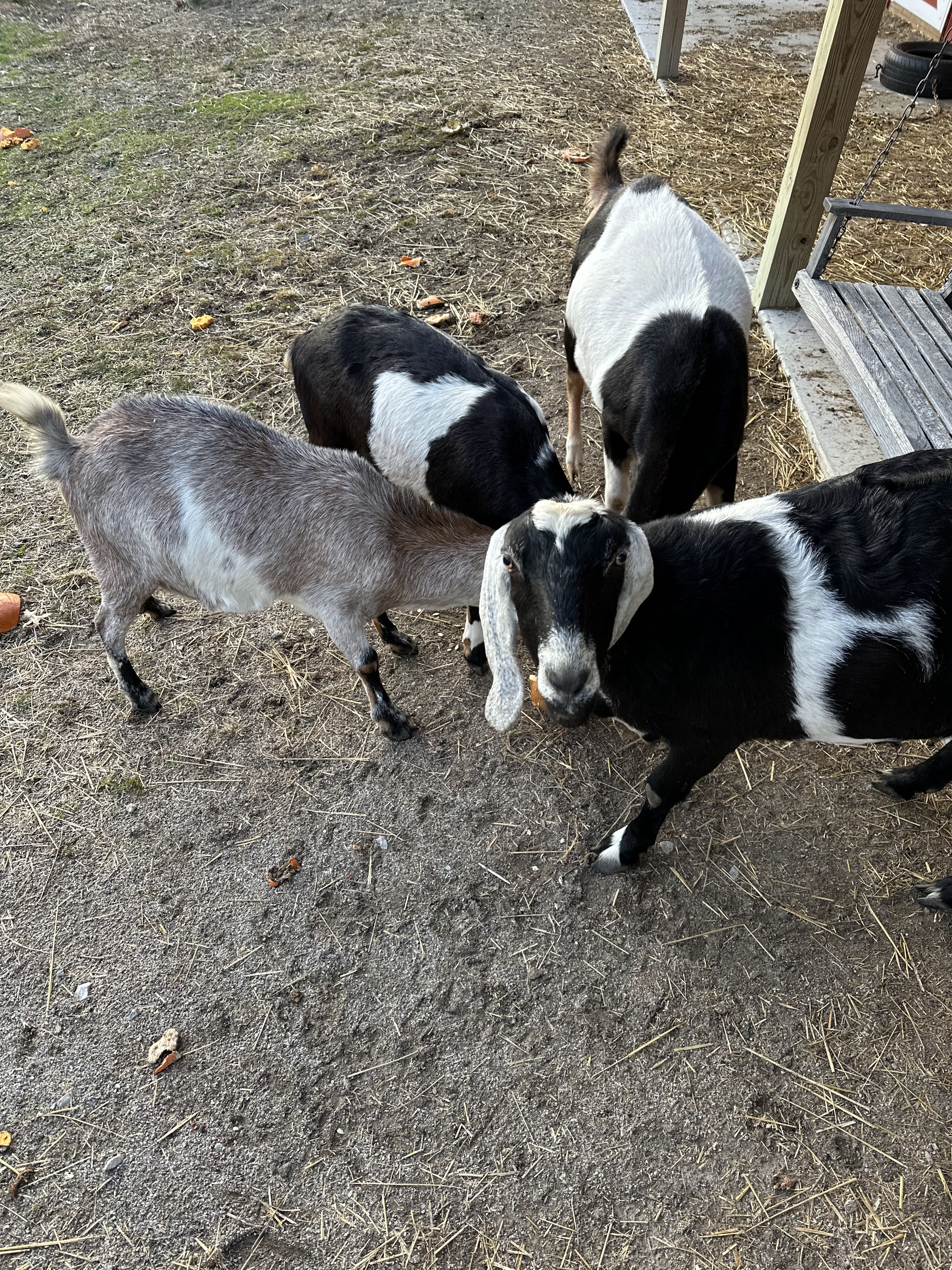 When we finished the big barn on our property we wondered what to fill it with! We knew we wanted to start with chicks, and we did, but then what was to be next? We narrowed it down to goats or sheep. We have some relatives who raise goats (at Clark’s LMH Farm) and they recommended goats due to their unique personalities. I pictured small goats in my head, as in hold in your arms-sized goats. We got Nubian goats, with our two males weighing in around 200lbs!